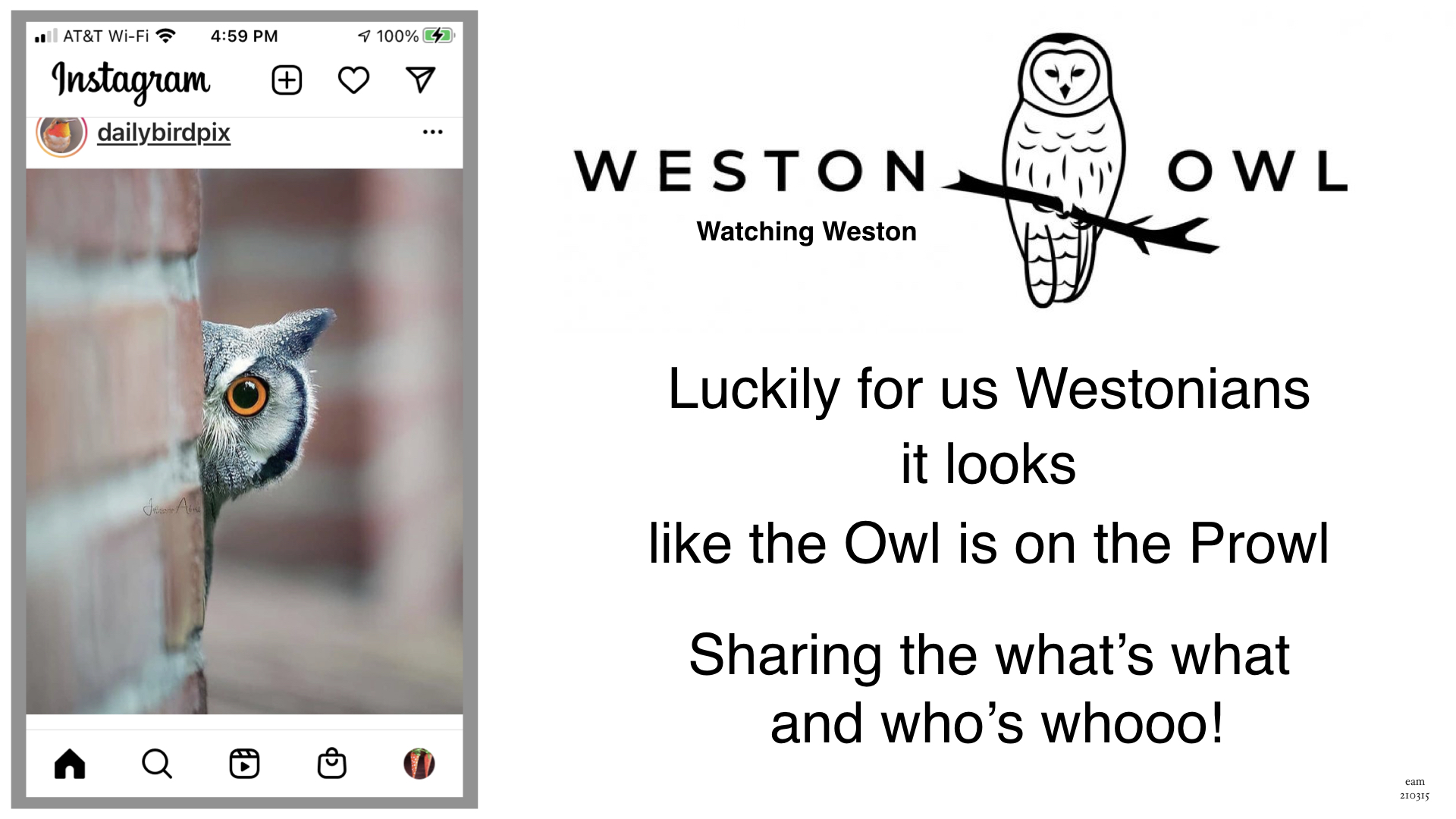 Luckily for us Westonians, it looks like the Owl is on the Prowl. Sharing the what’s what and who’s whooo!